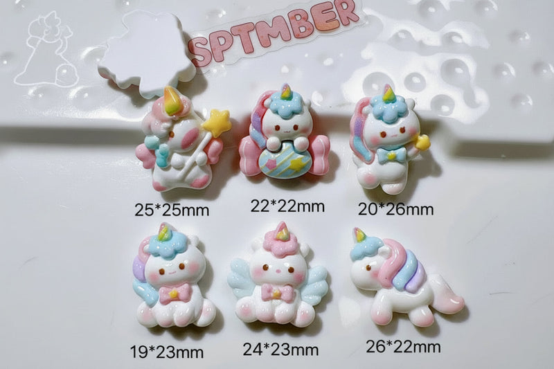 Erwecke deine kreativsten und zauberhaftesten Projekte mit diesen 10 bezaubernden Regenbogeneinhorn -Accessoires aus Kunstharz zum Leben! Die flachen Cabochons in leuchtenden Farben und mit ihrem unwiderstehlichen Cartoon-Design sind das perfekte Element, um unzählige Kreationen zu personalisieren – von einzigartigem Schmuck bis hin zu trendigen Dekoartikeln.