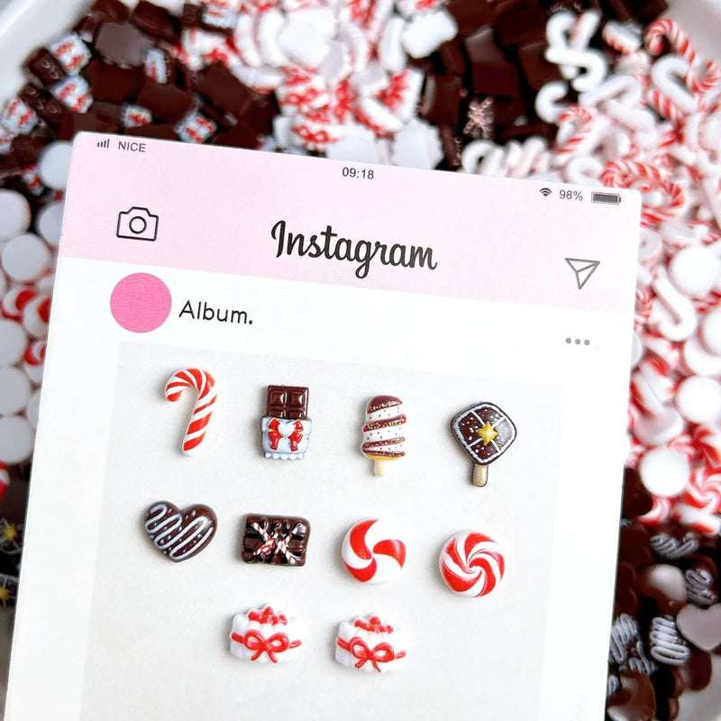 - Inhalt: 30 3D-Nagelanhänger aus Kunstharz (verschiedene Motive: Kuchen, Bonbons, Schokolade, Herz, Lutscher usw.).