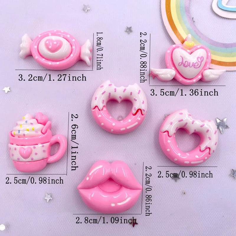 - Contents: 10 3D resin accessories/figures (assortment of hearts, donuts, bows, characters).