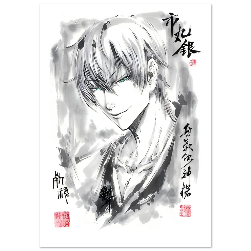 Discover a captivating artistic interpretation of the enigmatic Gin Ichimaru, former captain of the Gotei 13 in the world of BLEACH . This unique artwork blends the tradition of Chinese ink with the modern aesthetics of manga, creating a portrait that captures the full complexity of this ambiguous character.