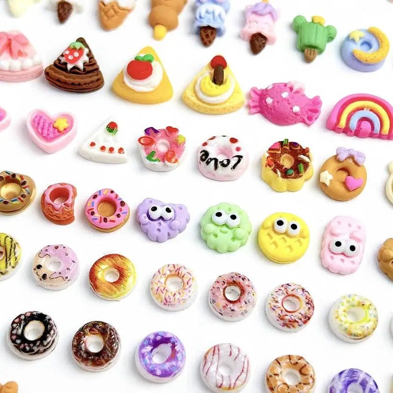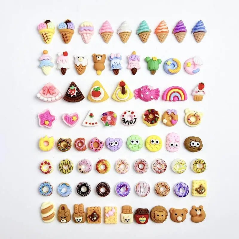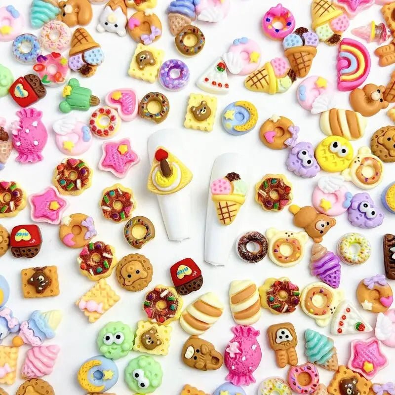 Unleash your inner sweet tooth! This delightful collection of resin nail charms features all your favorite desserts in miniature: refreshing ice creams, crunchy cookies, colorful donuts, and mouthwatering loaves of bread . Choose your set (20, 50, 100, or 200 pieces) and transform every manicure into a truly sweet and adorable celebration.