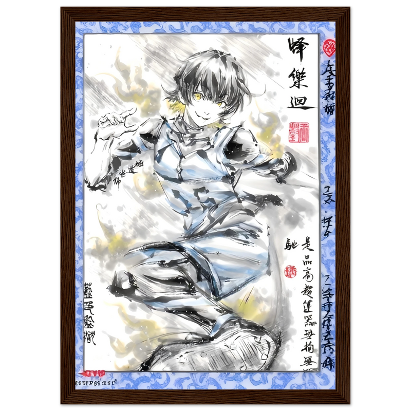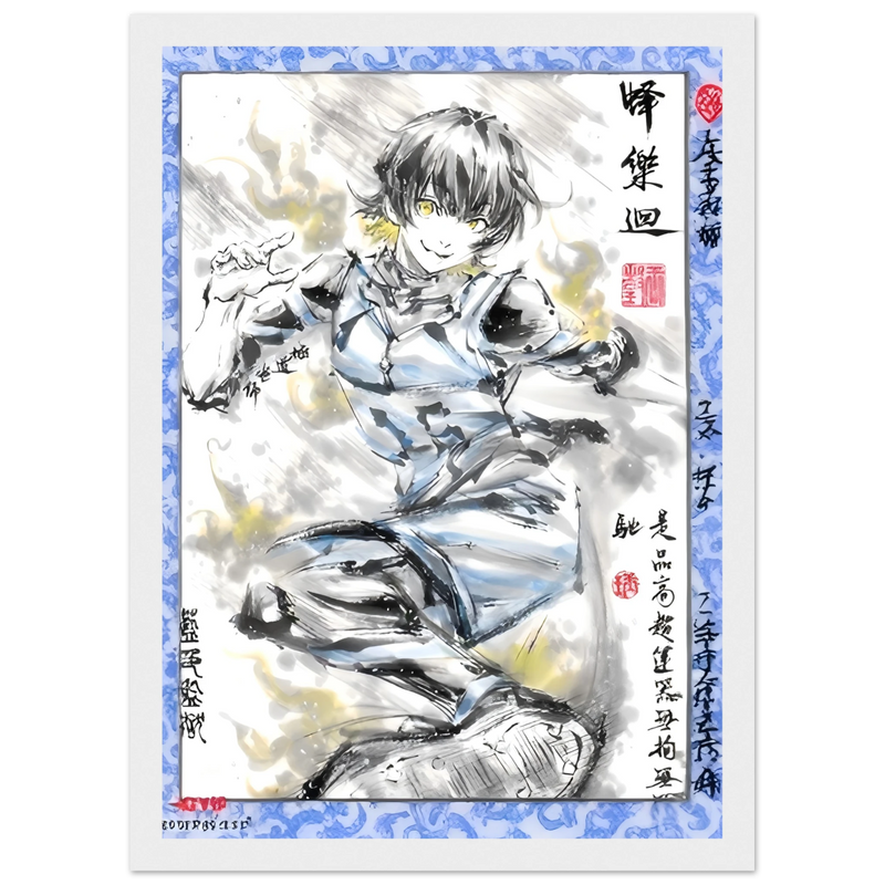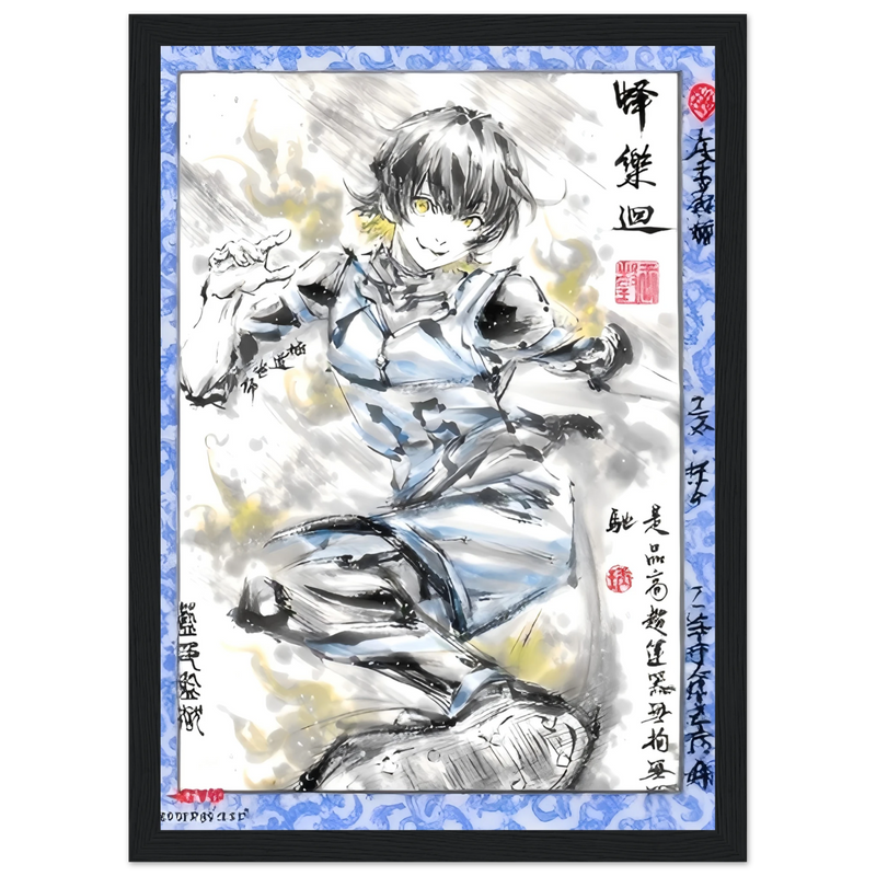 Discover a unique artistic interpretation of Meguru Bachira, the unpredictably talented player from the hit anime Blue Lock . This creation fuses the intensity of modern football with the finesse of traditional sumi-e aesthetics, offering a vision where movement and emotion become one.