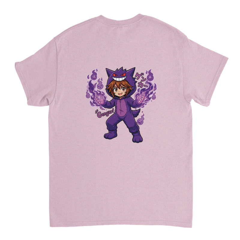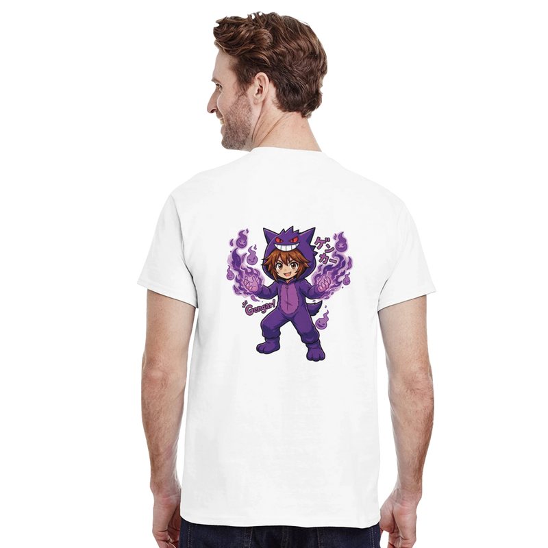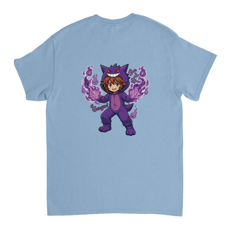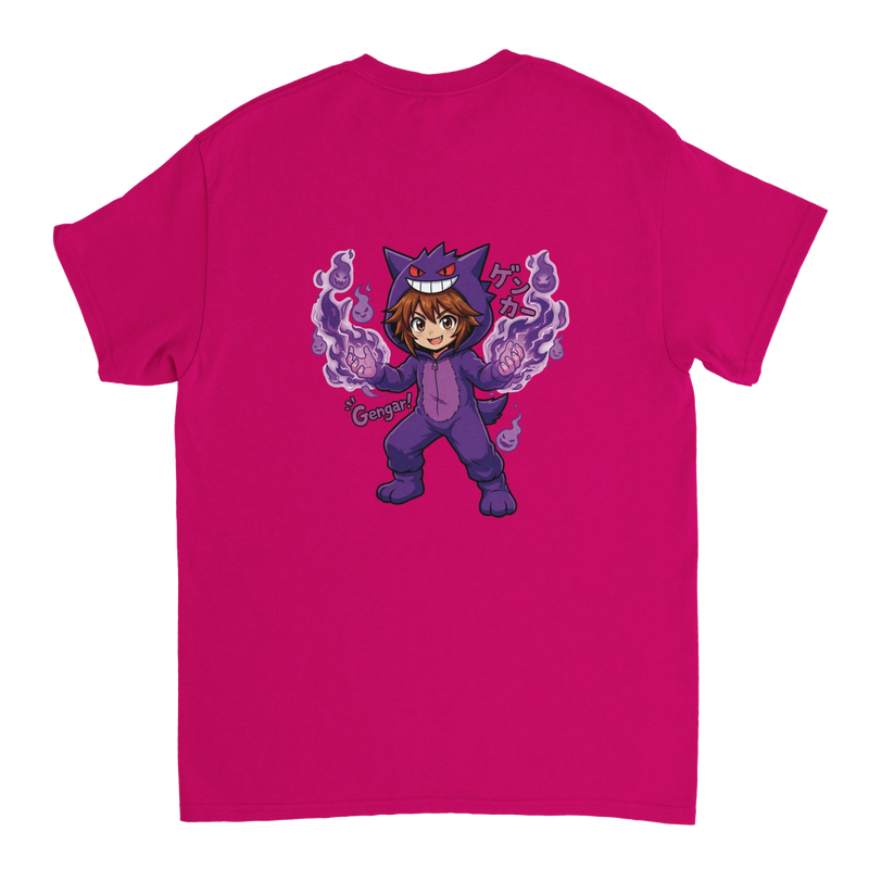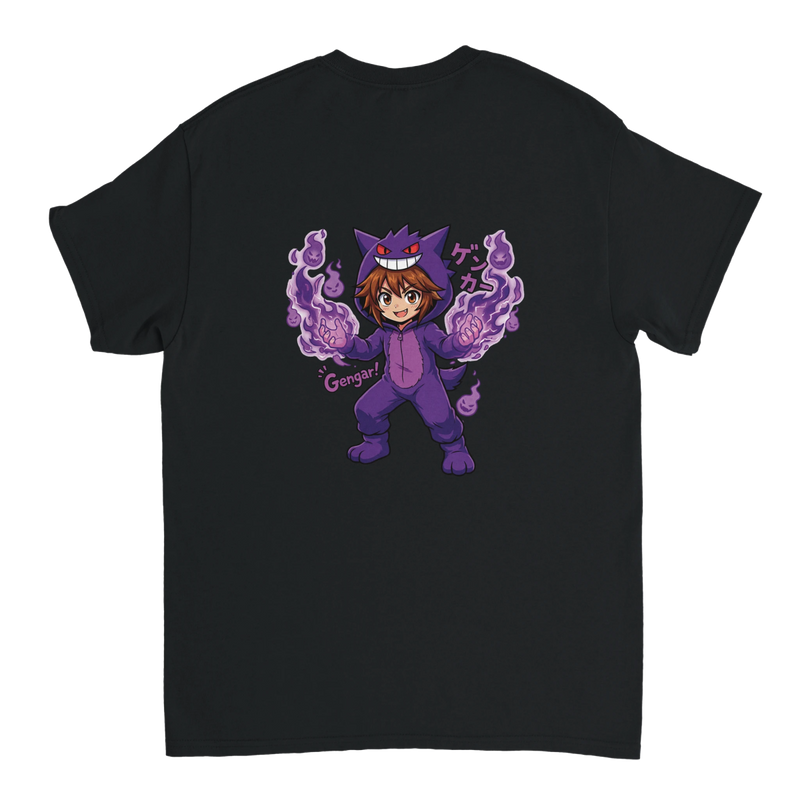 Express your passion for Pokémon in a unique way with this heavyweight Crewneck T-shirt! It features an exclusive and colorful design of Ruka disguised as Gengar, one of the most iconic Ghost Pokémon, ready to launch a spectacular attack.