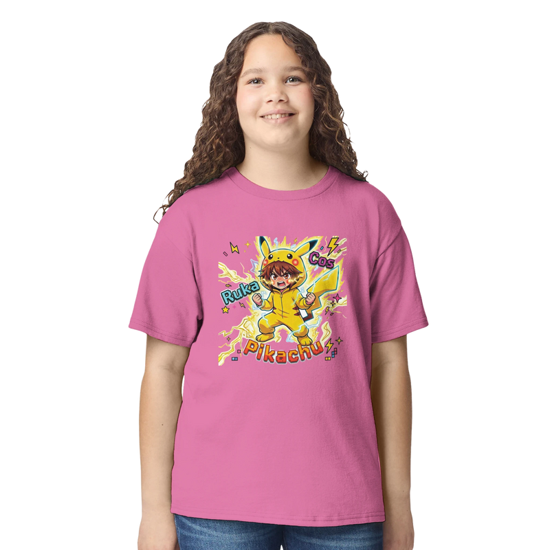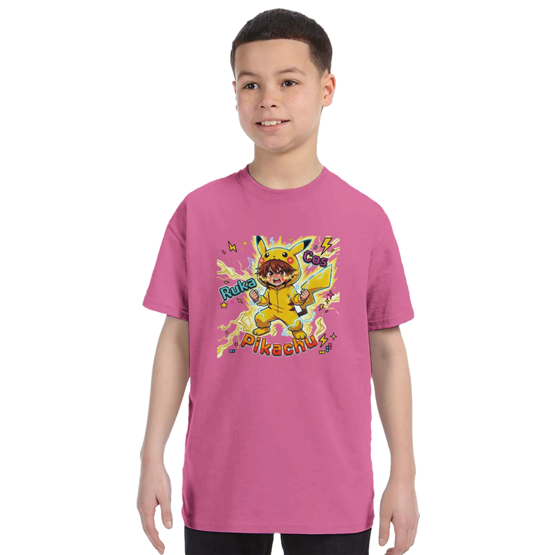 The perfect gift idea for a young Pokémon fan, for a birthday, or to complete a trainer's outfit. This "Ruka as Pikachu Full Power" t-shirt is made for playing, exploring, and proudly displaying their passion for the Pokémon universe, with the comfort and quality needed to follow all their adventures.