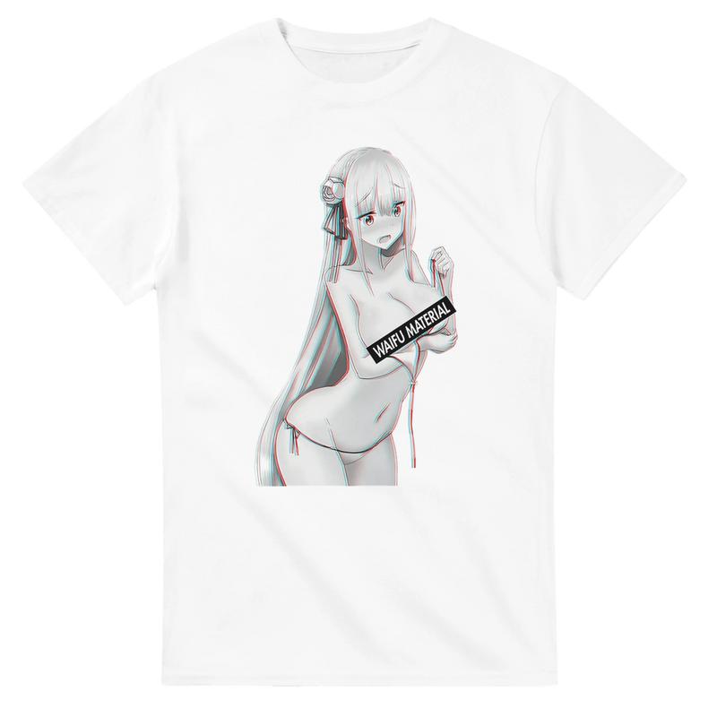 - High-quality anime print design featuring Emilia, a famous waifu character with long hair and an elegant hairstyle.
