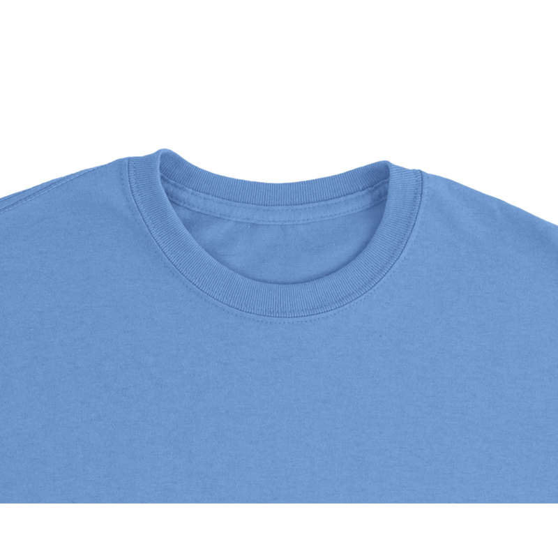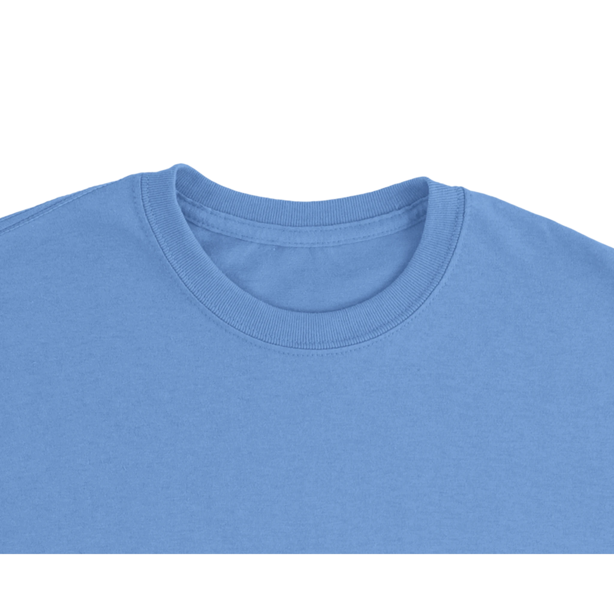 Solid colors (like the Light Blue shown): 100% cotton (pre-shrunk jersey).