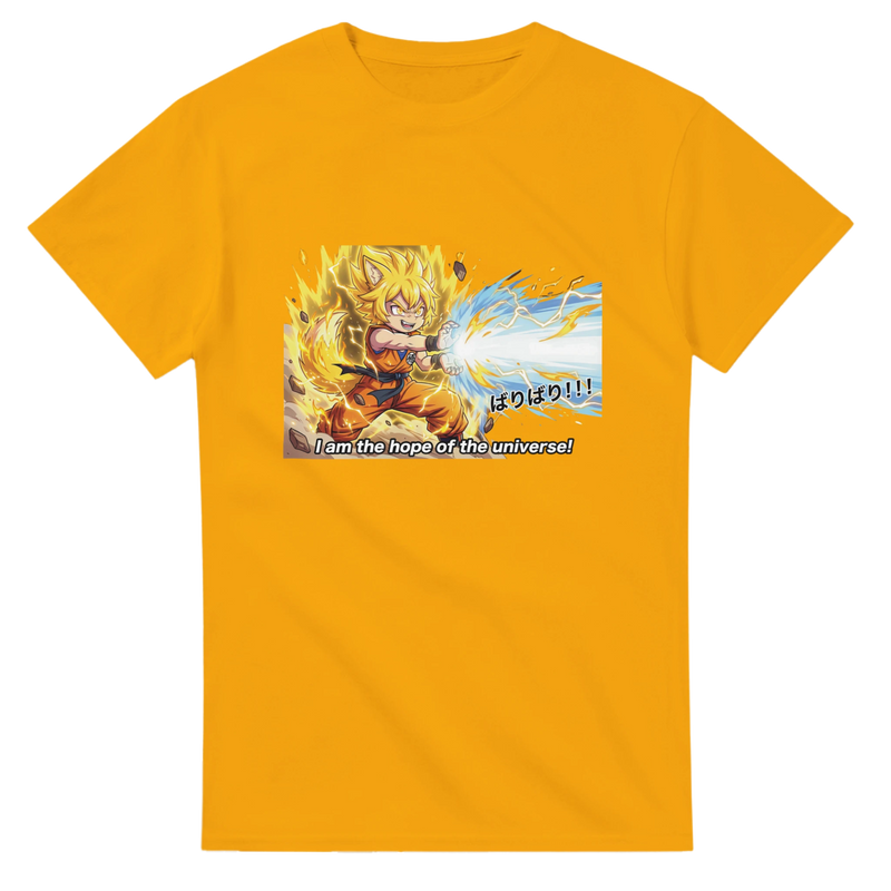 Adopt this "Ruka's Super Saiyan Transformation" T-shirt and proudly wear the colors of the most famous transformation in the anime universe, with a garment that combines comfort, durability and a unique graphic design.