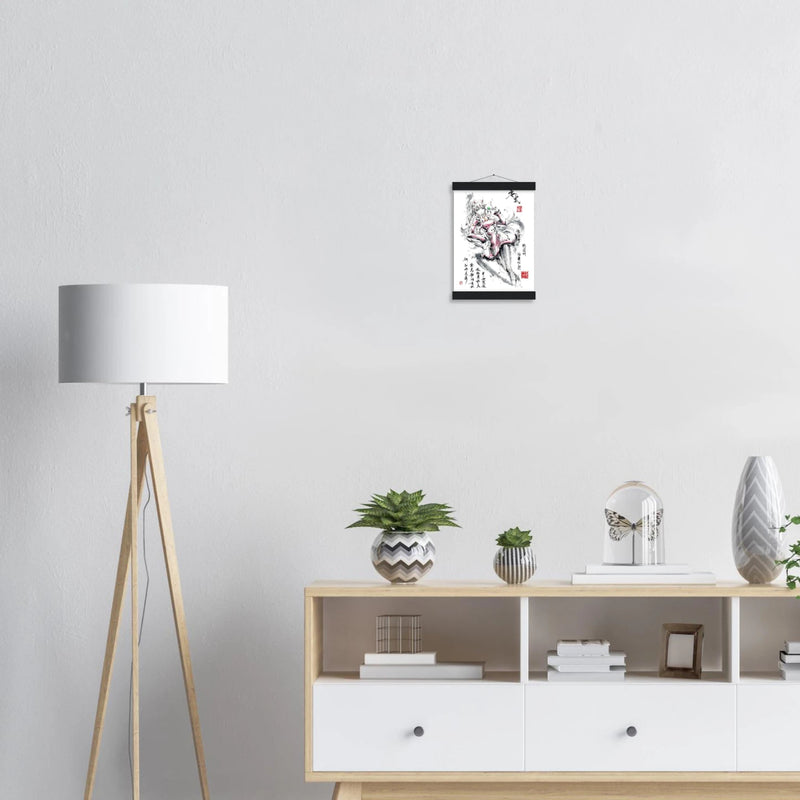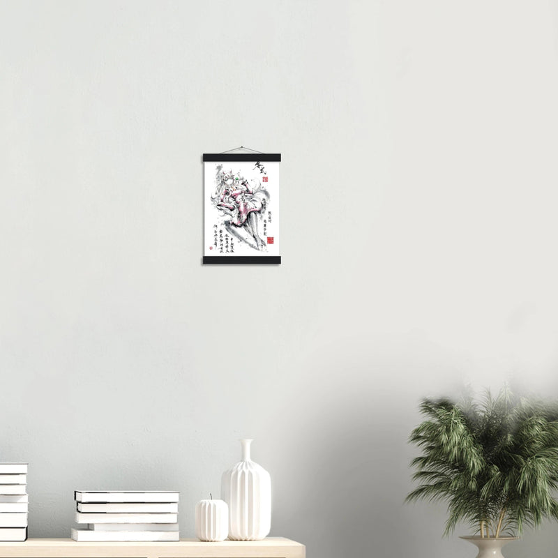 Our minimalist wooden hanging strips include four magnetic wooden strips: two that secure the top of your poster and two that secure the bottom, giving it a vintage look and feel. The poster is printed on classic, very lightweight, uncoated matte paper. The perfect option to stand the test of time.