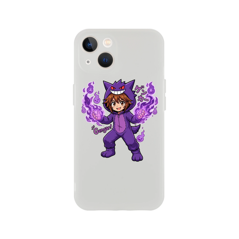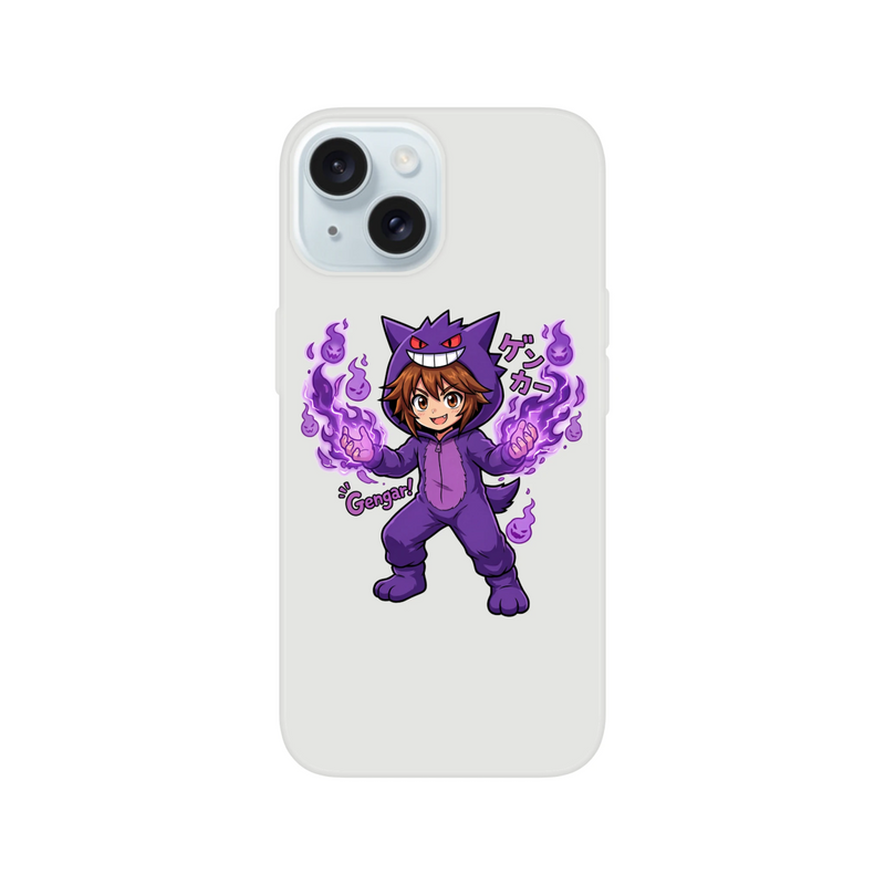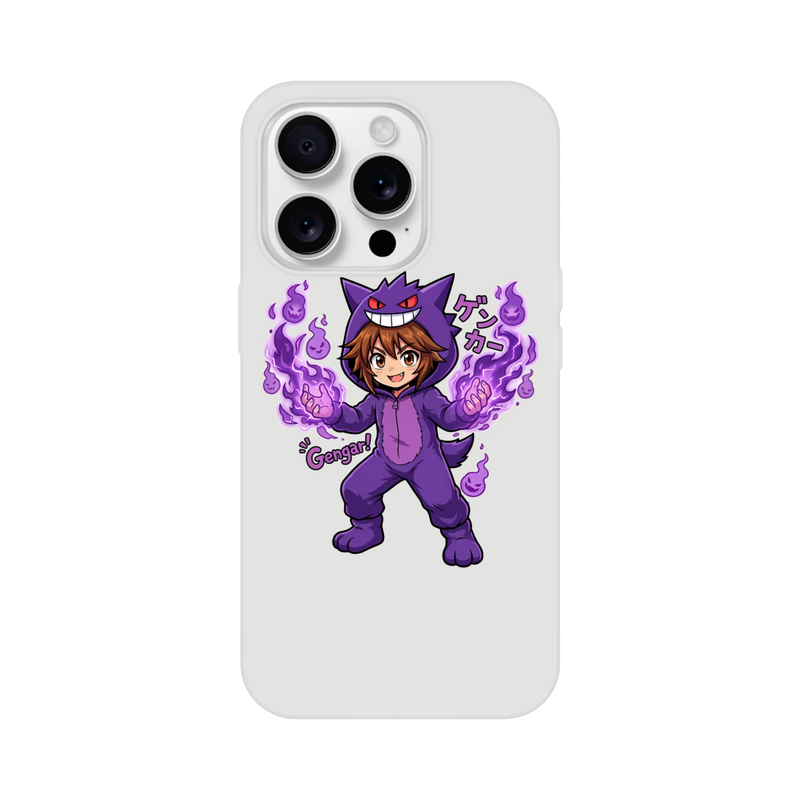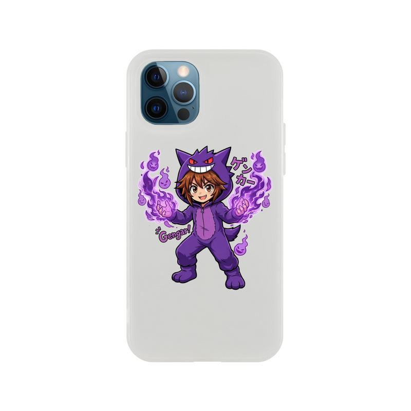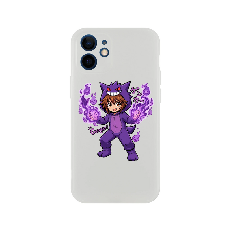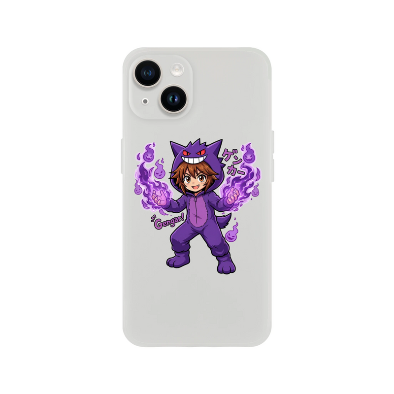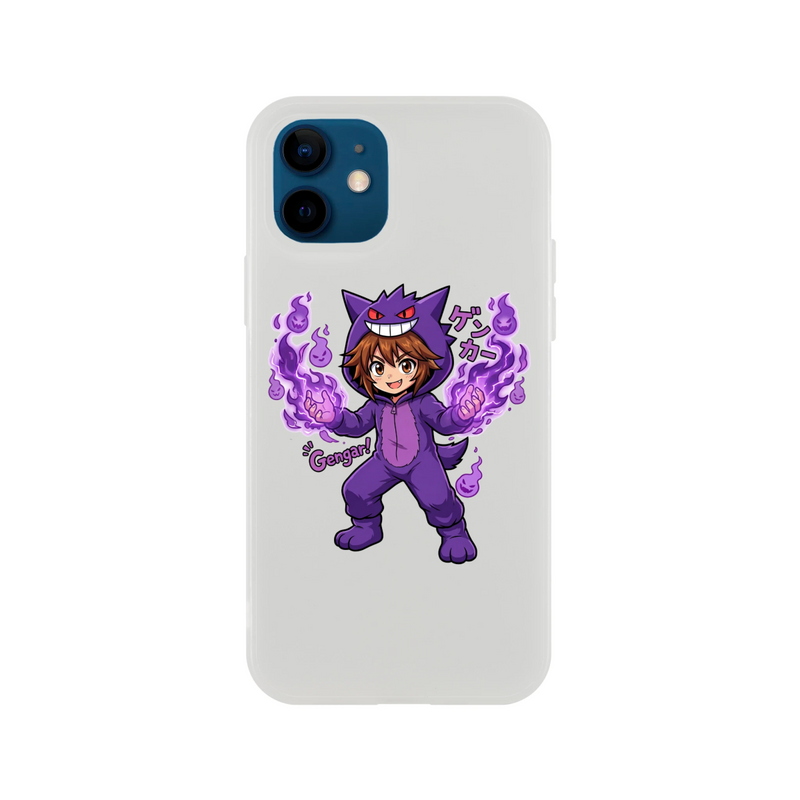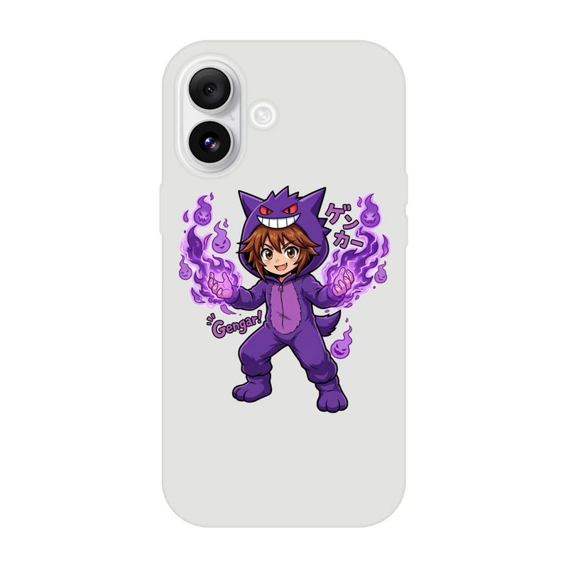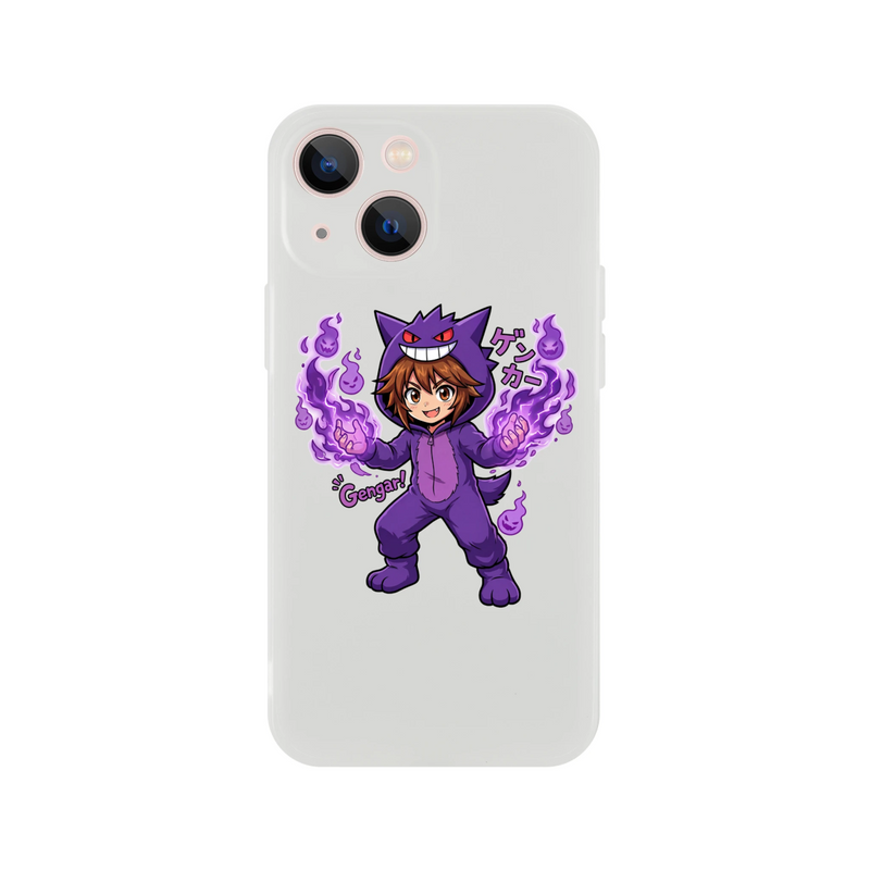 Protégez votre iPhone avec style et passion ! Découvrez la coque souple transparente "Flexi Case" officielle, ornée d'un design exclusif de Ruka déguisée en Gengar, l'emblématique Pokémon fantôme.