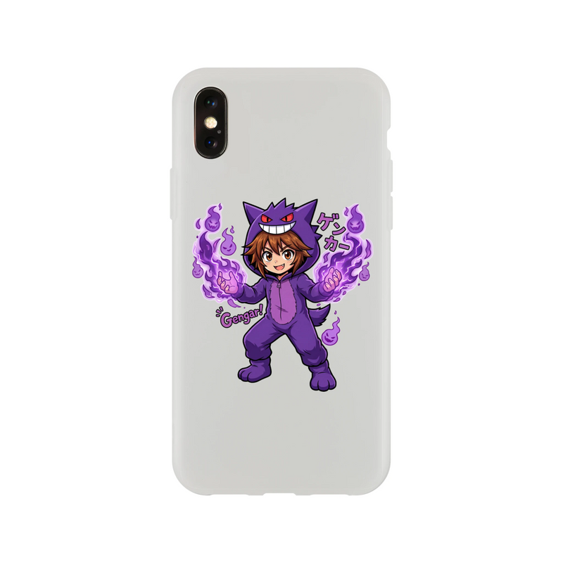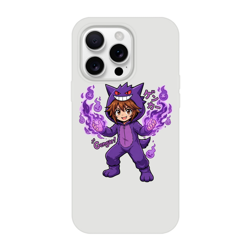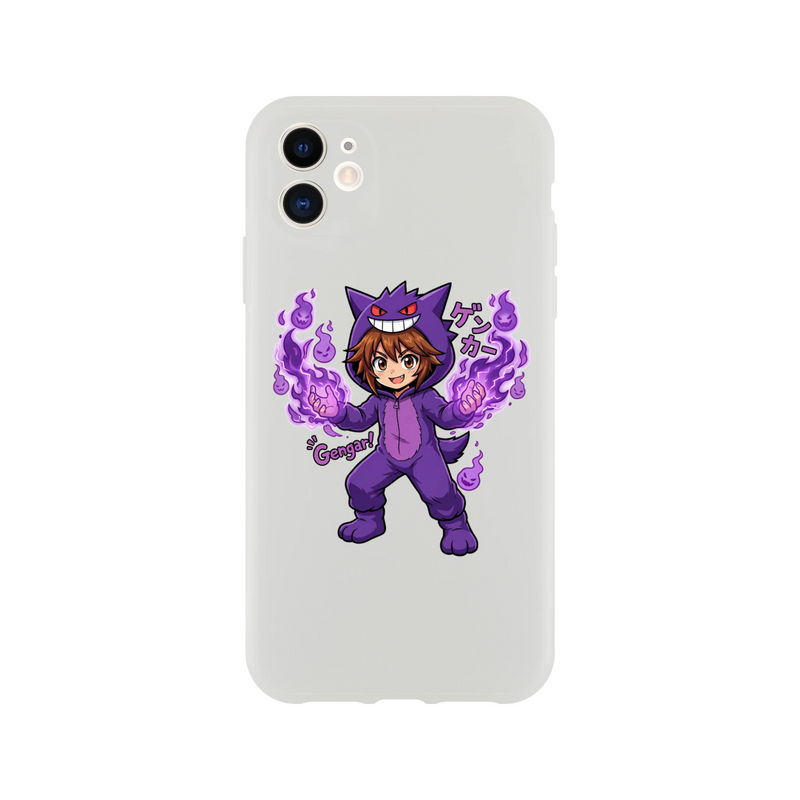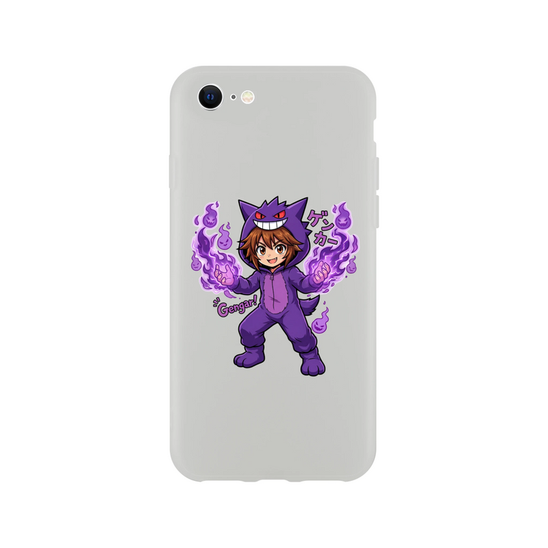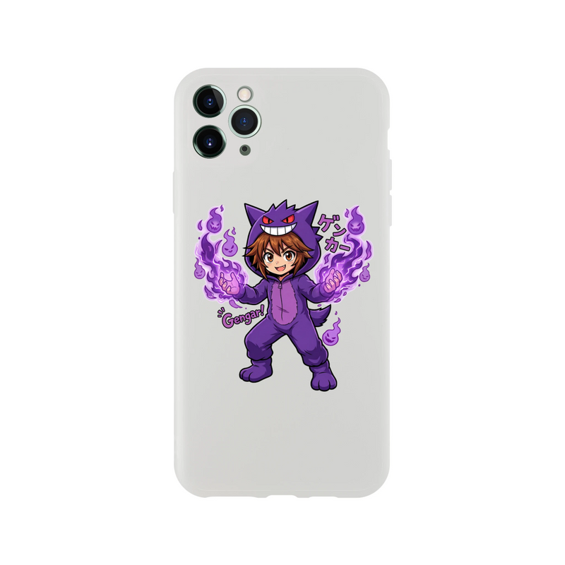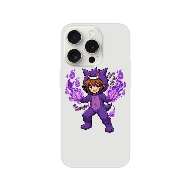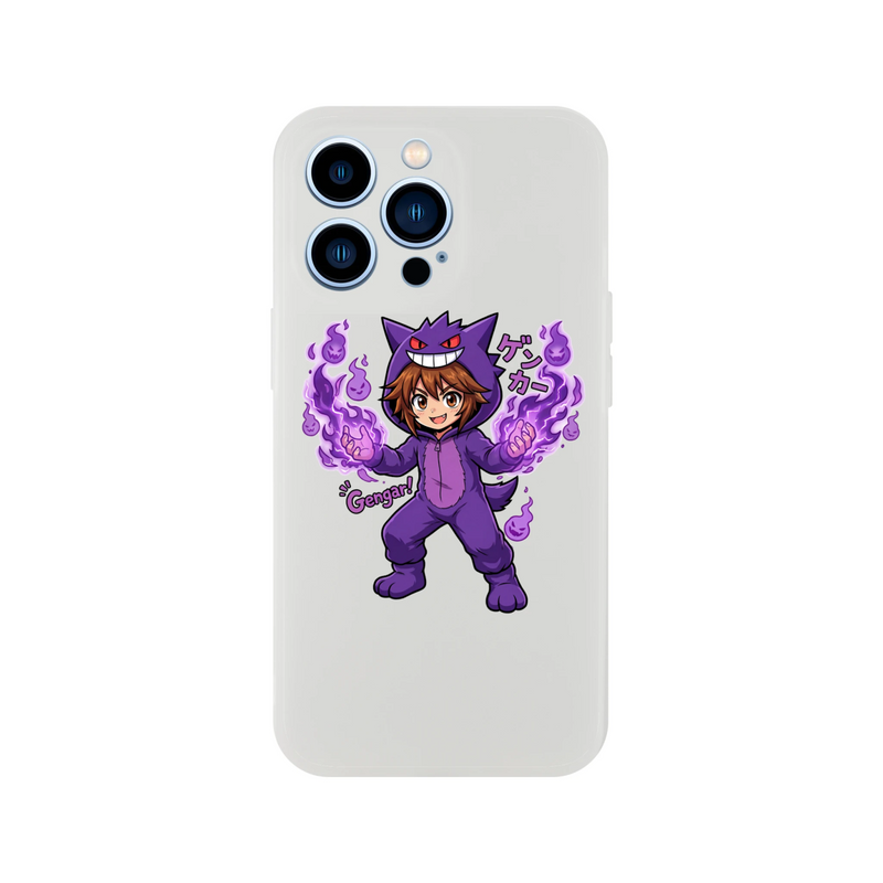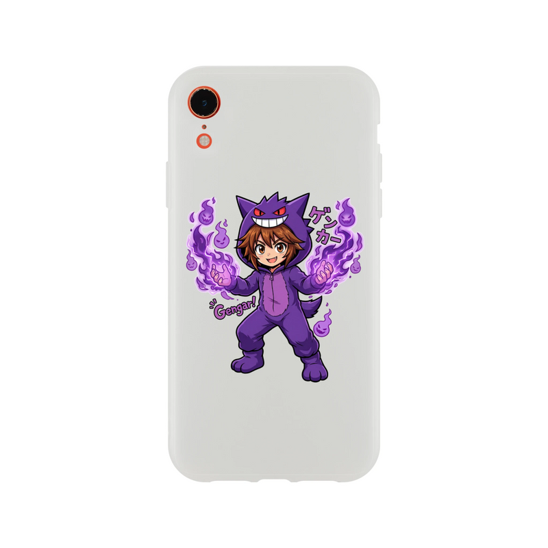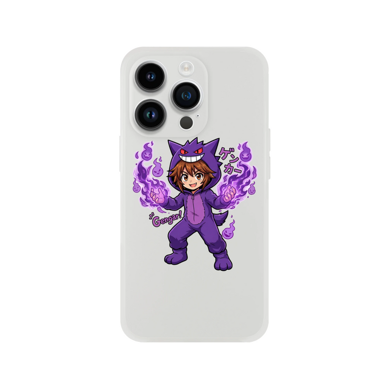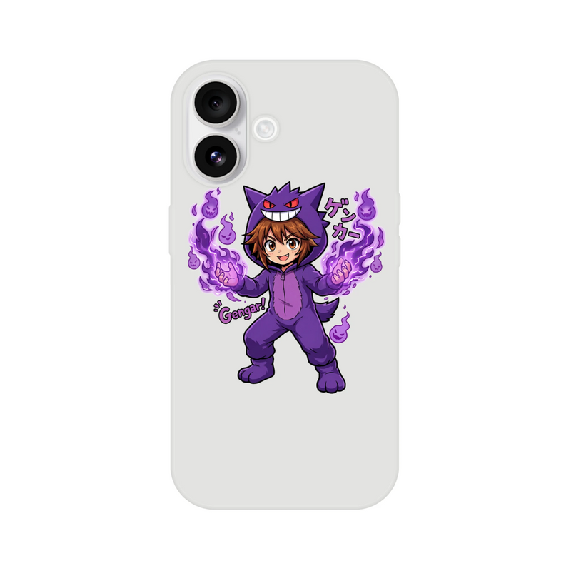 Protégez votre iPhone avec style et passion ! Découvrez la coque souple transparente "Flexi Case" officielle, ornée d'un design exclusif de Ruka déguisée en Gengar, l'emblématique Pokémon fantôme.