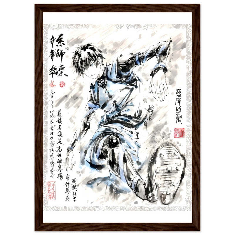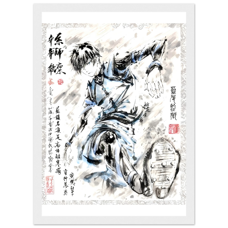 Découvrez une interprétation artistique exceptionnelle de Rin Itoshi, le joueur au talent redoutable de l'anime culte Blue Lock. Cette création unique fusionne l'intensité du football moderne avec la profondeur ancestrale de l'esthétique sumi-e, où chaque trait d'encre révèle la complexité du personnage.