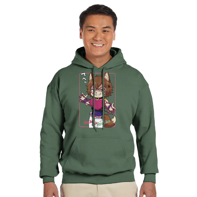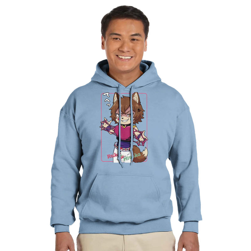 Ce hoodie bleu clair, comme porté par le modèle sur l'image, est l'allié parfait pour vos looks décontractés. Il présente une illustration exclusive et colorée de Ruka dans une interprétation pleine de malice du personnage iconique Hisoka, capturant son sourire énigmatique et son esthétique de joueur. Une véritable pièce de conversation pour afficher votre passion.
