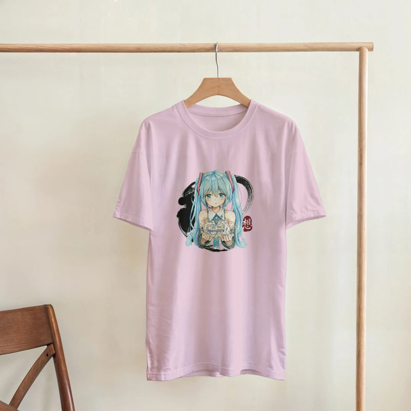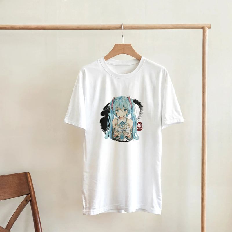 Avec sa coupe classique unisexe et son style décontracté, ce T-shirt est l’essentiel parfait pour un look quotidien. Idéal pour les fans d’Hatsune Miku, de culture anime, ou pour quiconque souhaite ajouter une touche d’émotion et de personnalité à sa garde-robe.